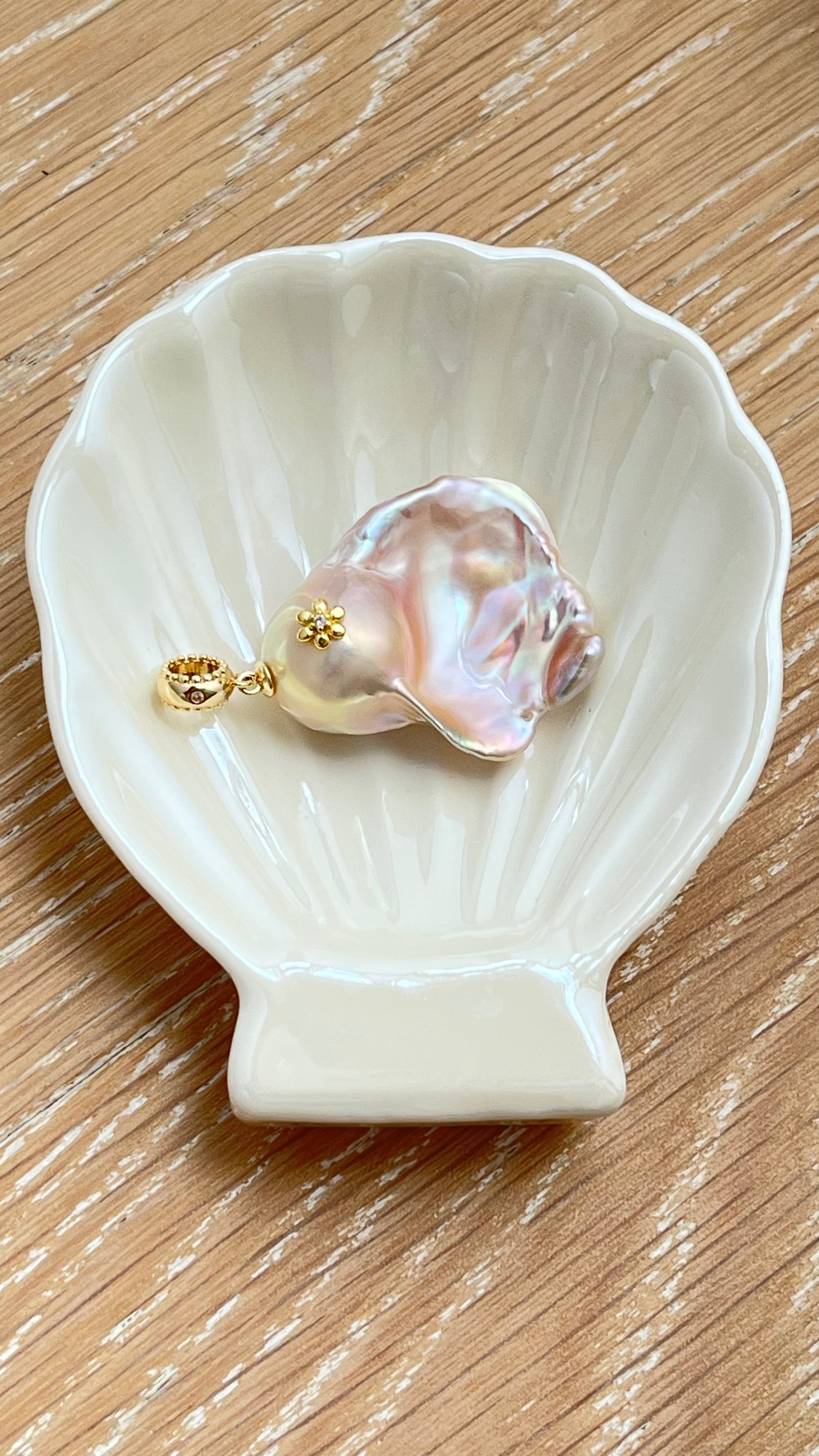The pearlβs flowing and oversized tail adds an elegant and dynamic touch to its classic baroque silhouette. Paired with an 18k gold-plated copper bail, this pendant is a charming and versatile piece that effortlessly enhances any necklace or bracelet, perfect for adding a playful yet refined touch to your jewelry collection.